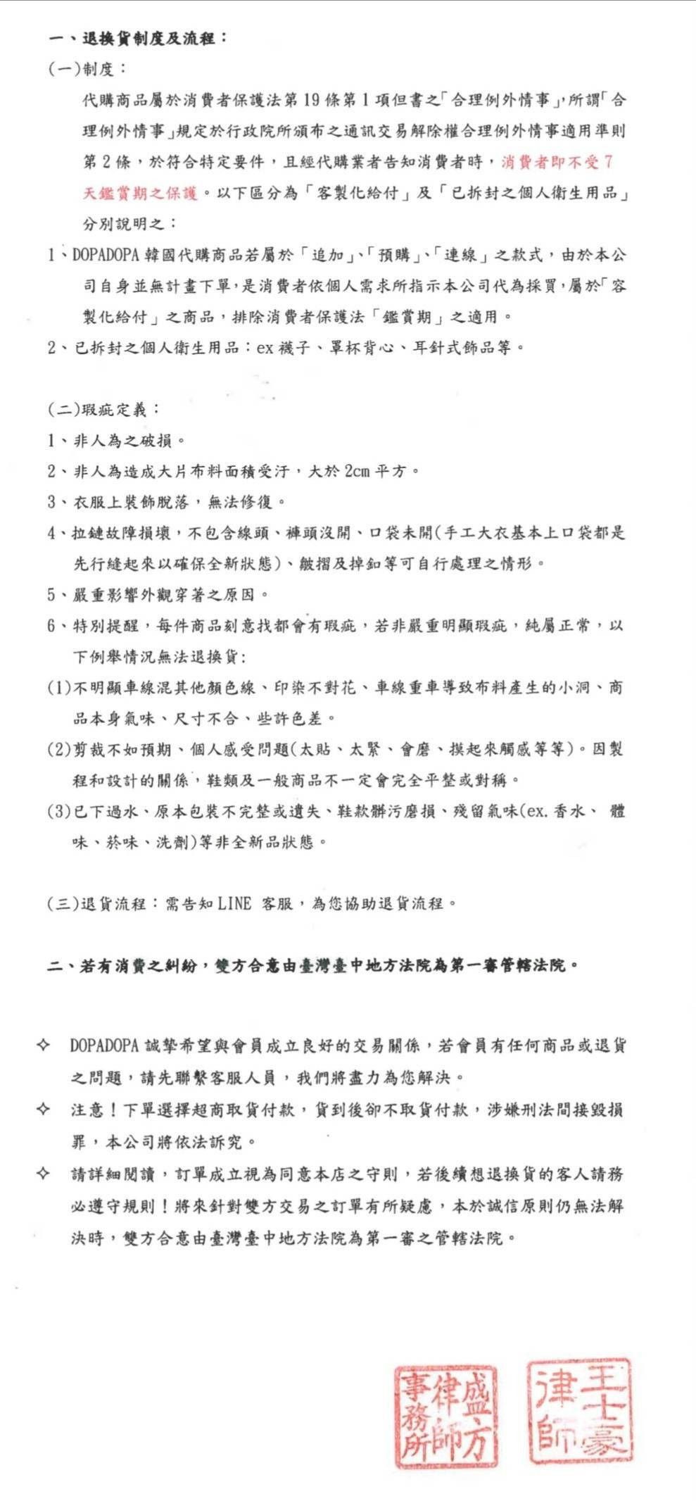 本賣場皆為客訂代購並採空運回台,恕不提供退貨服務,如遇瑕疵可代為向韓國替換同商品,DOPA DOPA吸收換貨的國際空運費及追加成本,台灣國內運費需自行負擔。