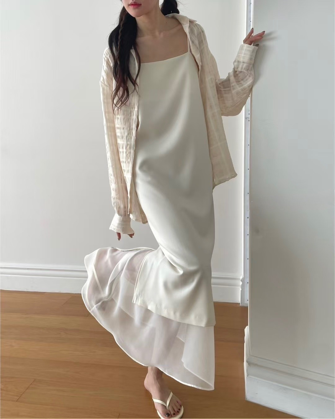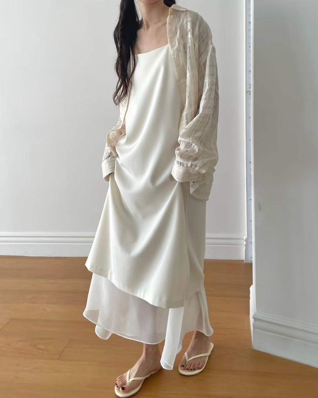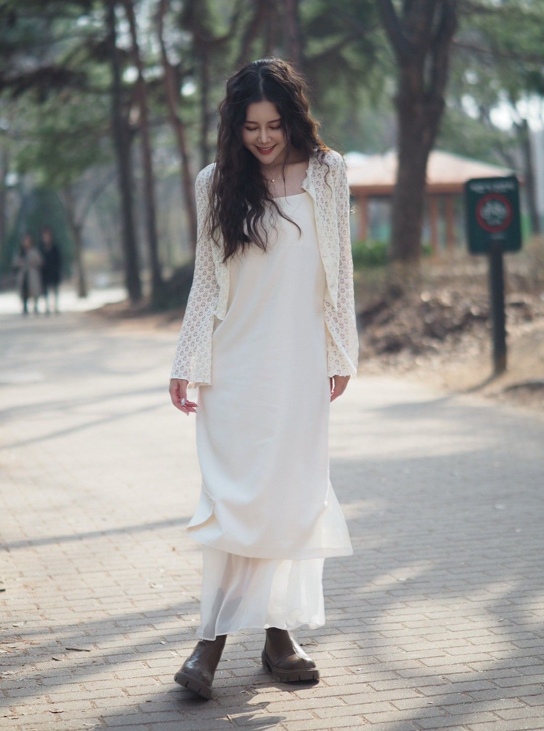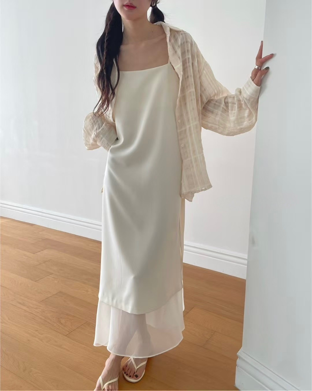 商品詳情 ● Notice:部份商品為追加預購商品,若有現貨需求請先私訊詢問庫存現貨與否 ● 產地:韓國 ● 顏色 :米白/黑 ● Model 資訊:身高160cm/體重49kg ● 平量單位: 公分 拼接雪紡細肩帶洋裝 TWD $1,780 TWD$ 1,620