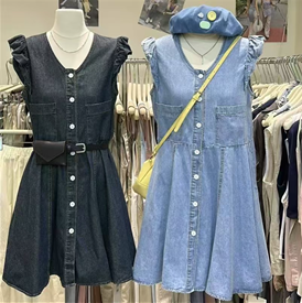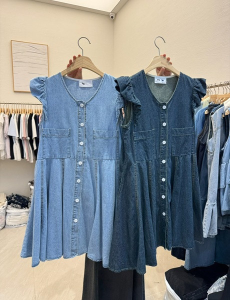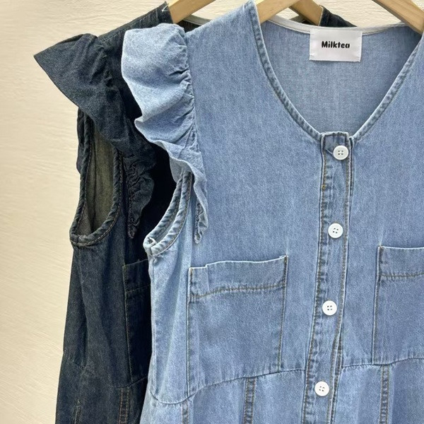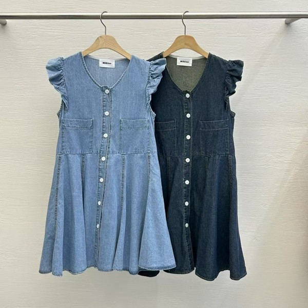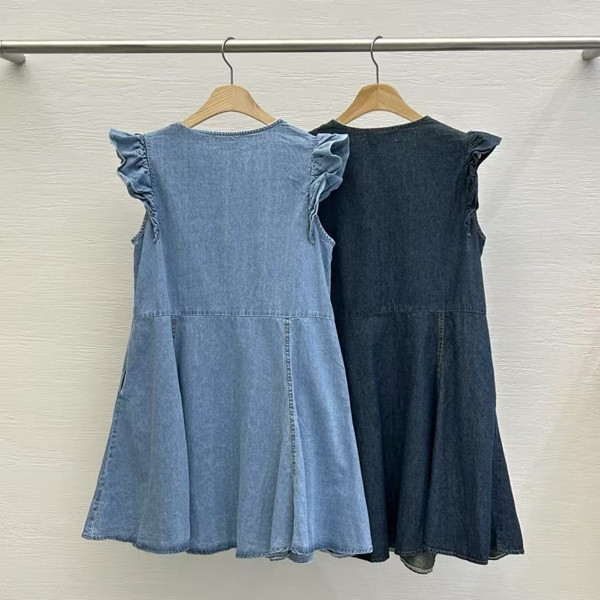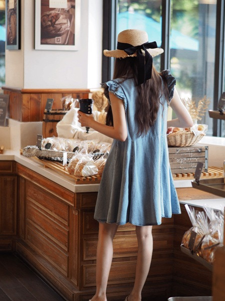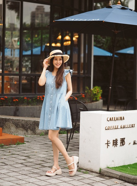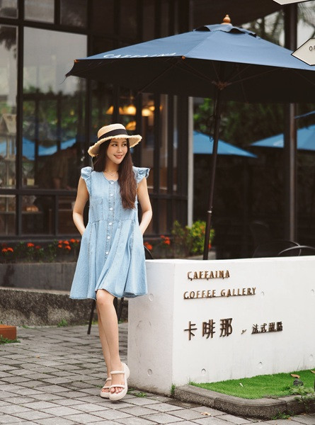 荷葉袖牛仔短洋裝,DOPA DOPA