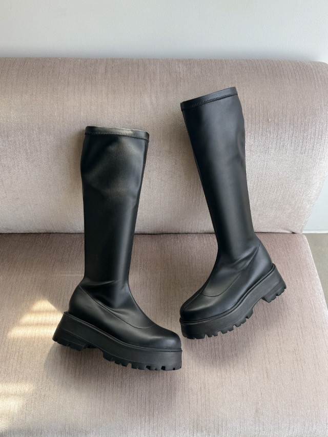 商品詳情 ● 產地:KOREA ● 顏色 :黑 ● 尺寸 :23/23.5/24/24.5/25 ● 後跟:5CM ● 前跟:2CM ● 筒高:41.5CM(鞋底算起) ● 材質:合成皮革 版型正常不用拿大半號, 但腳板寬度超過8.3公分建議拿大半號! (此款腿圍偏小、23腿肚腿圍30公分,請先測量後再下單唷!) 韓製增高貼腿美圖靴靴 TWD $2,280 TWD $2,280