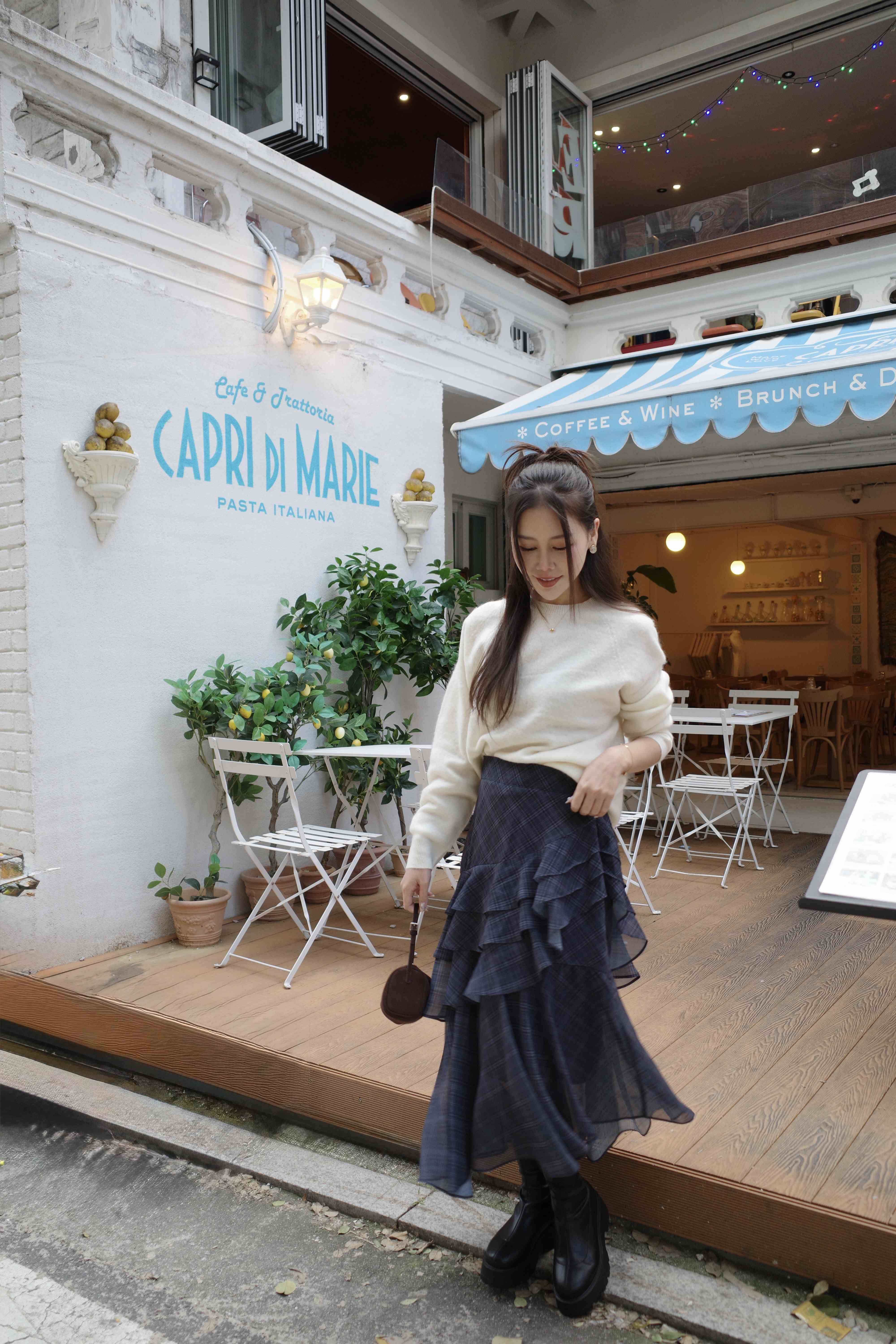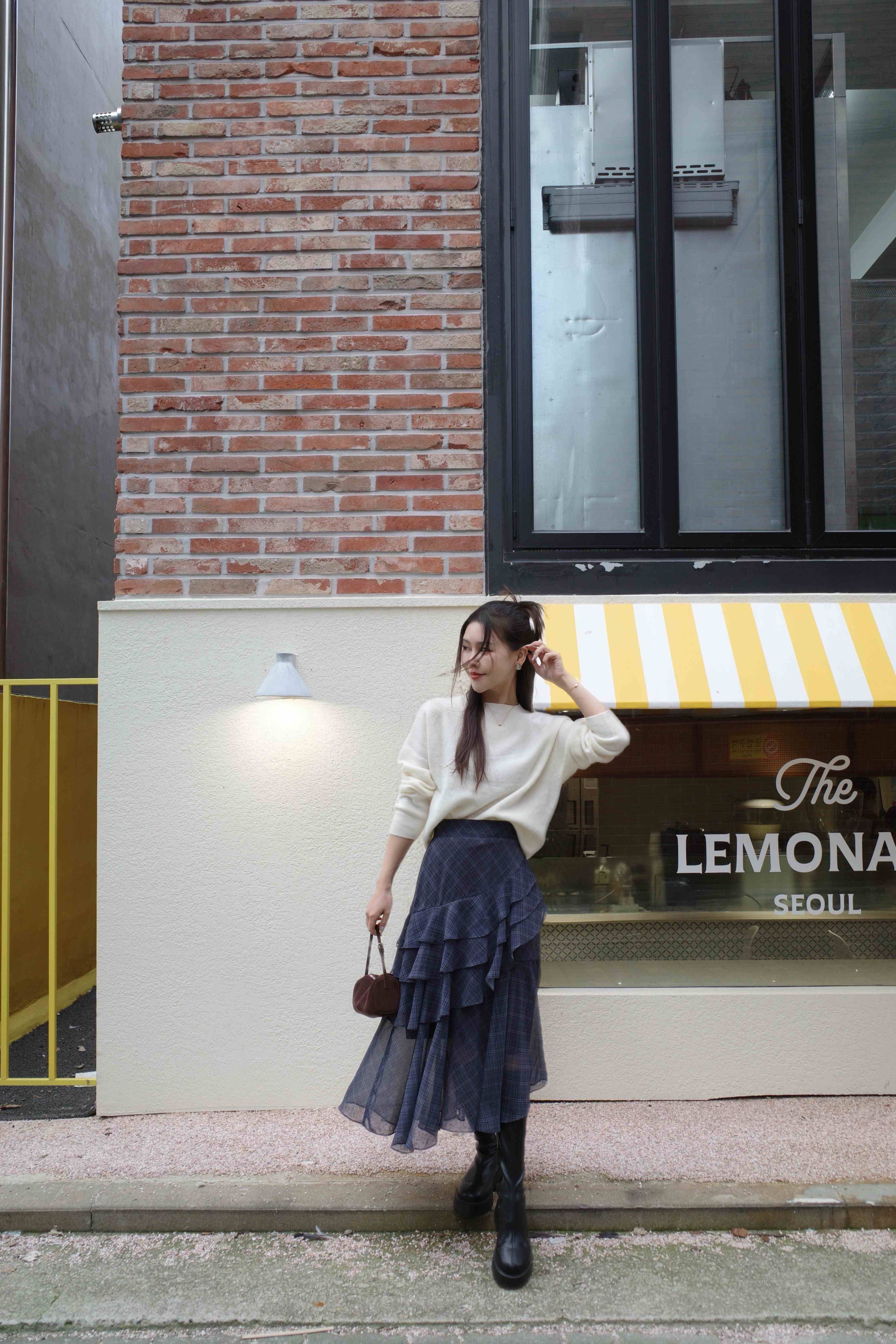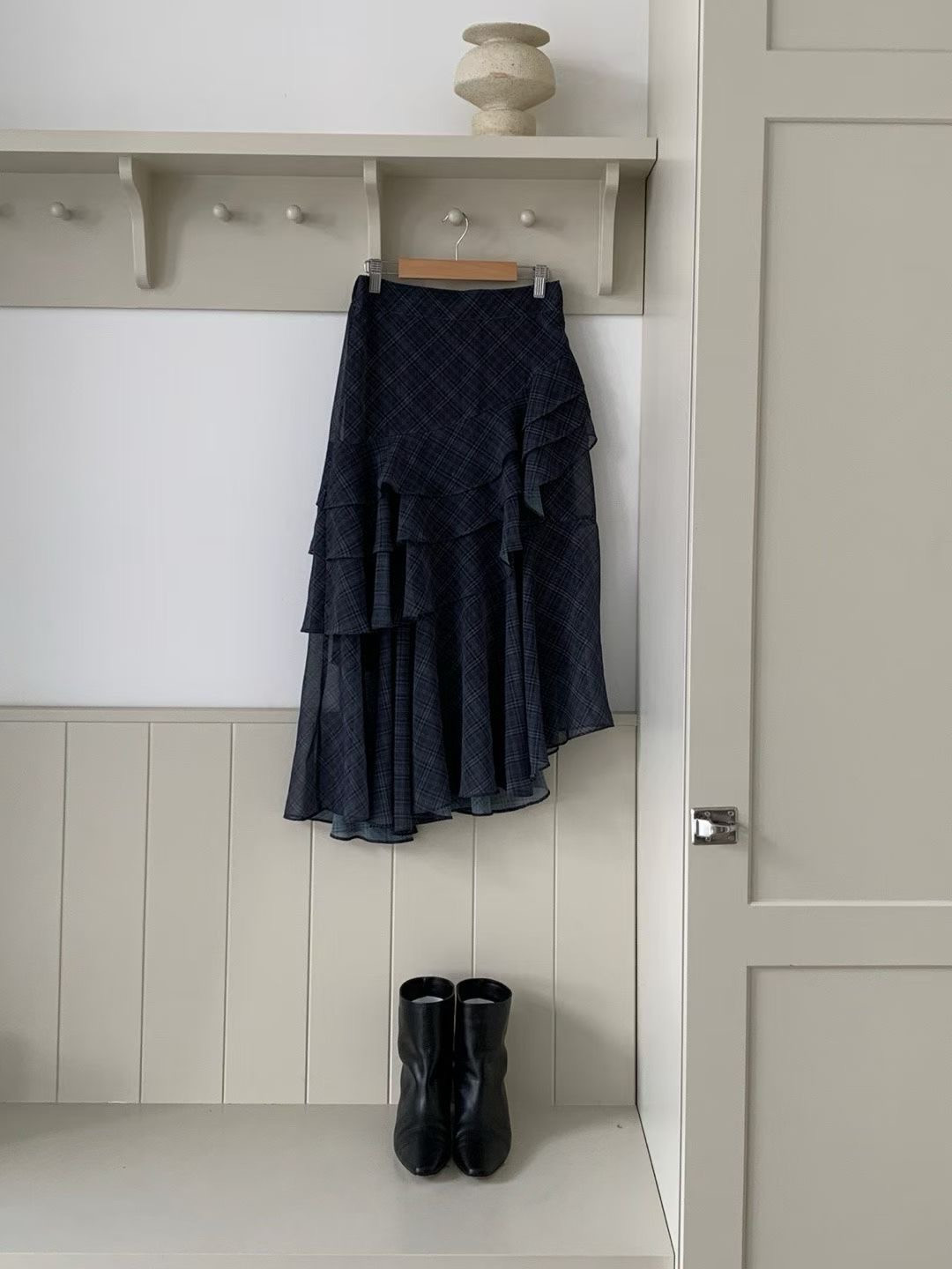 不規則格紋荷葉長裙,DOPA DOPA