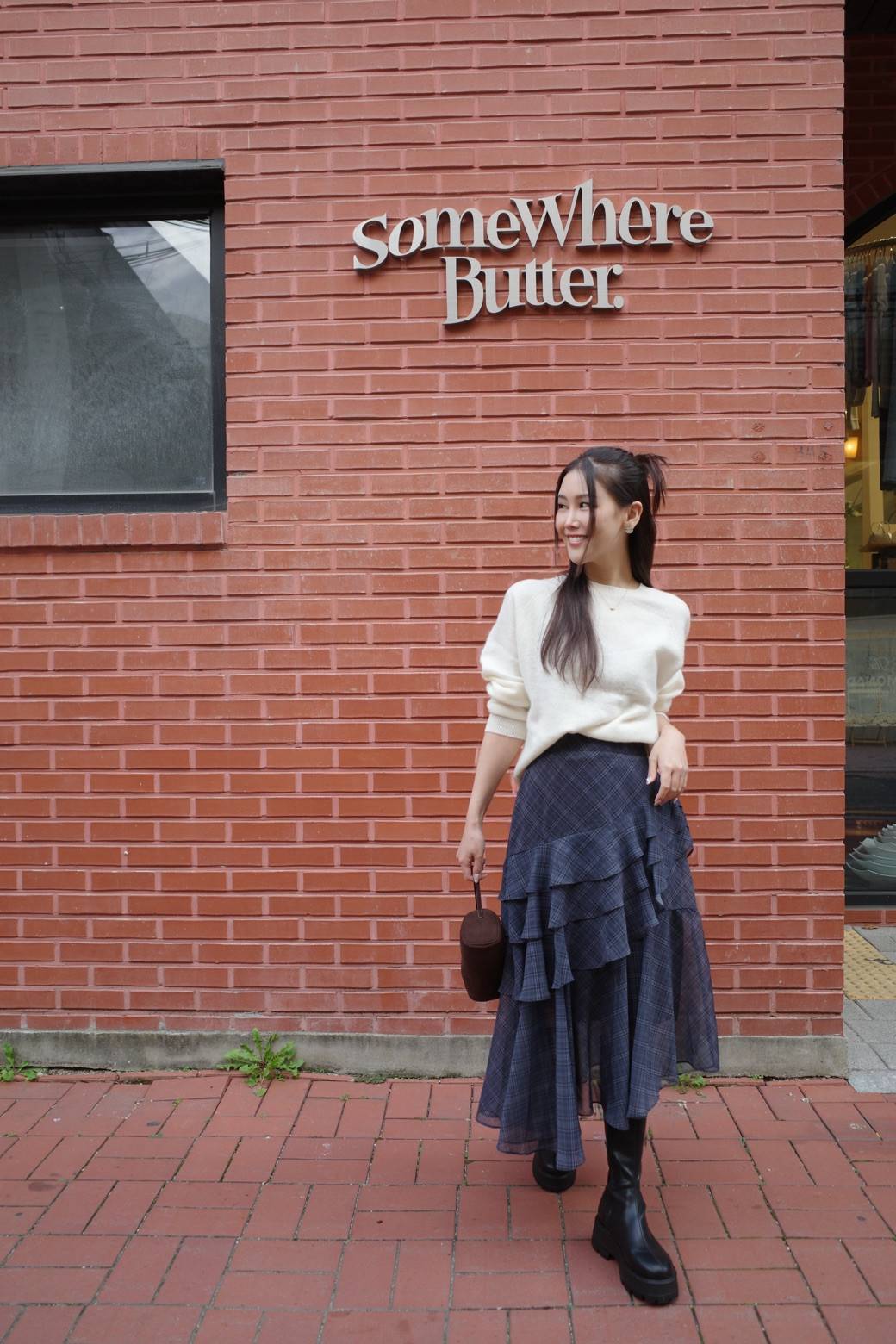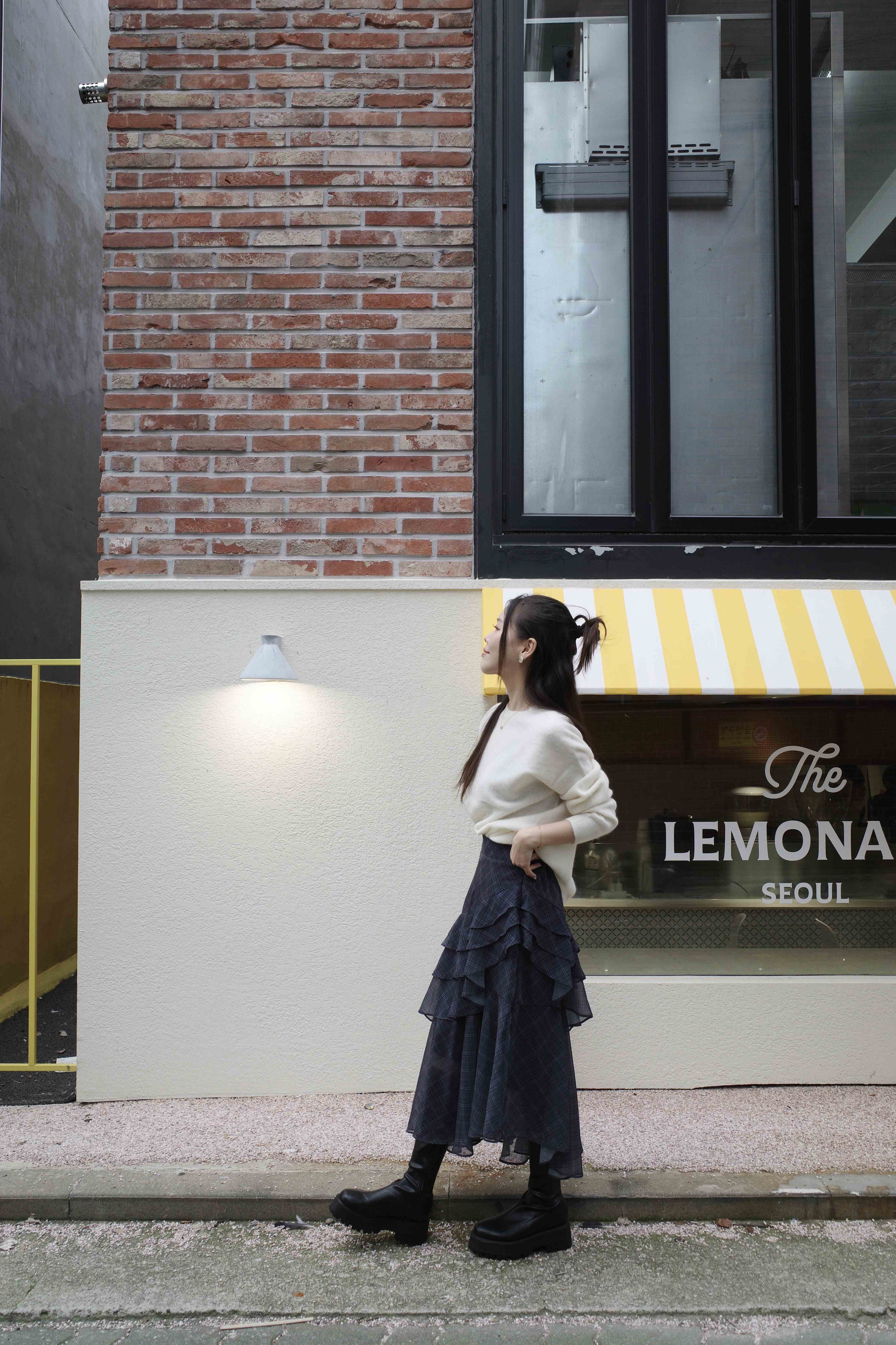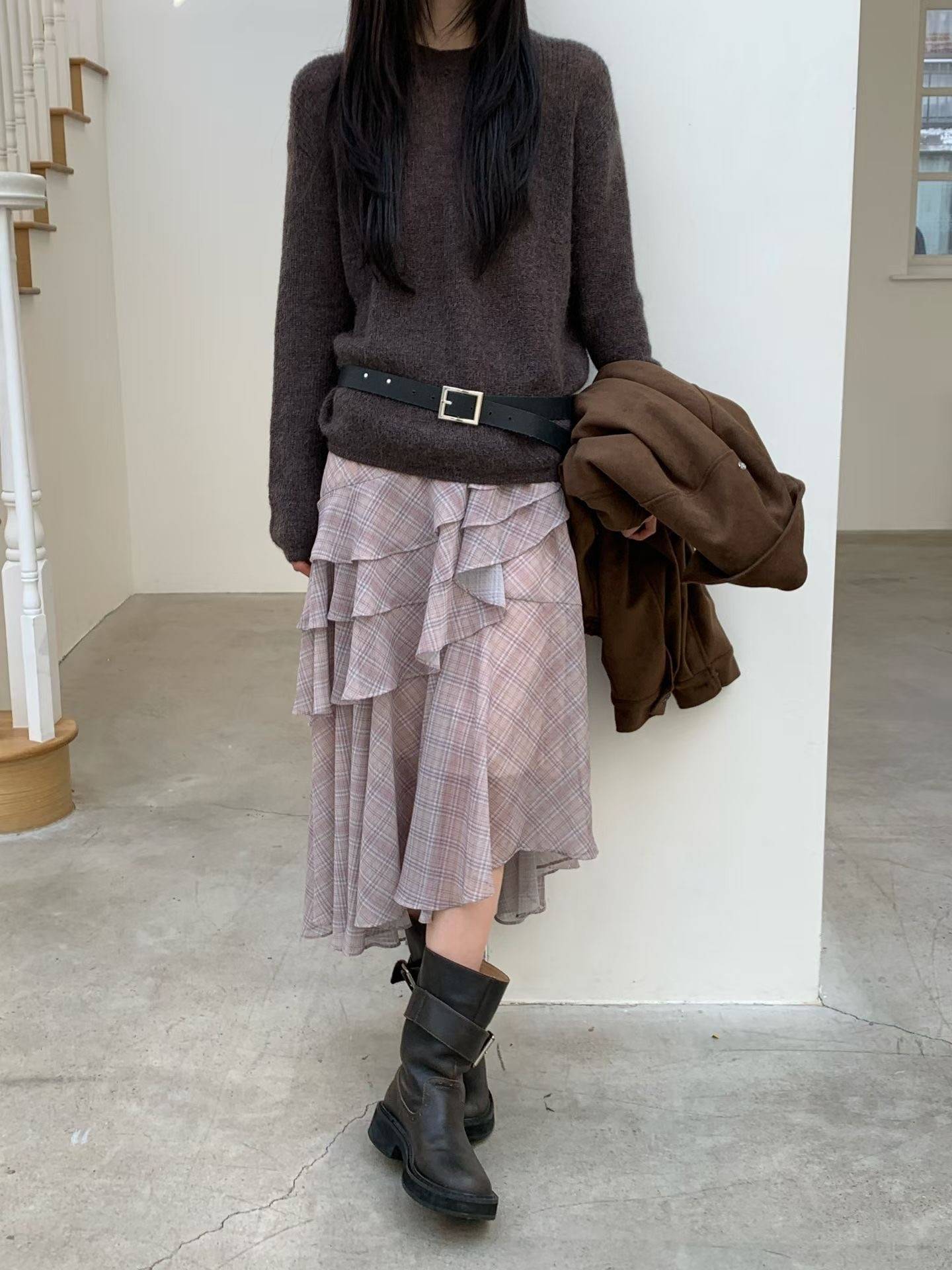 不規則格紋荷葉長裙,DOPA DOPA