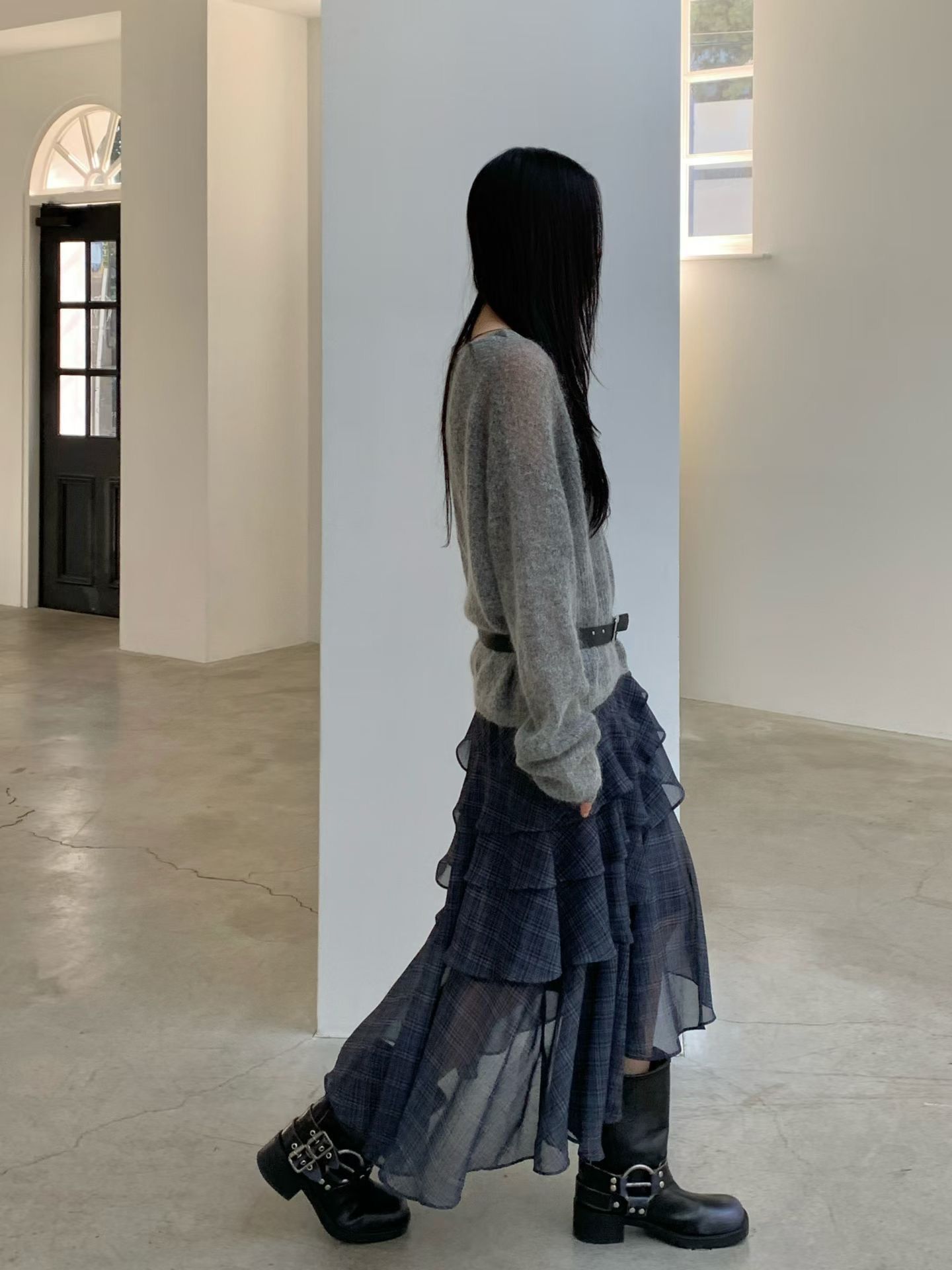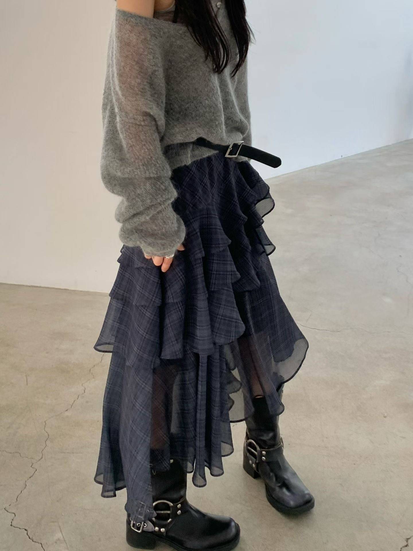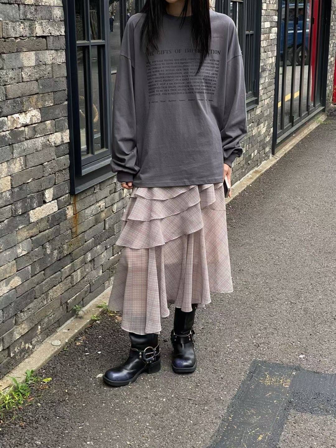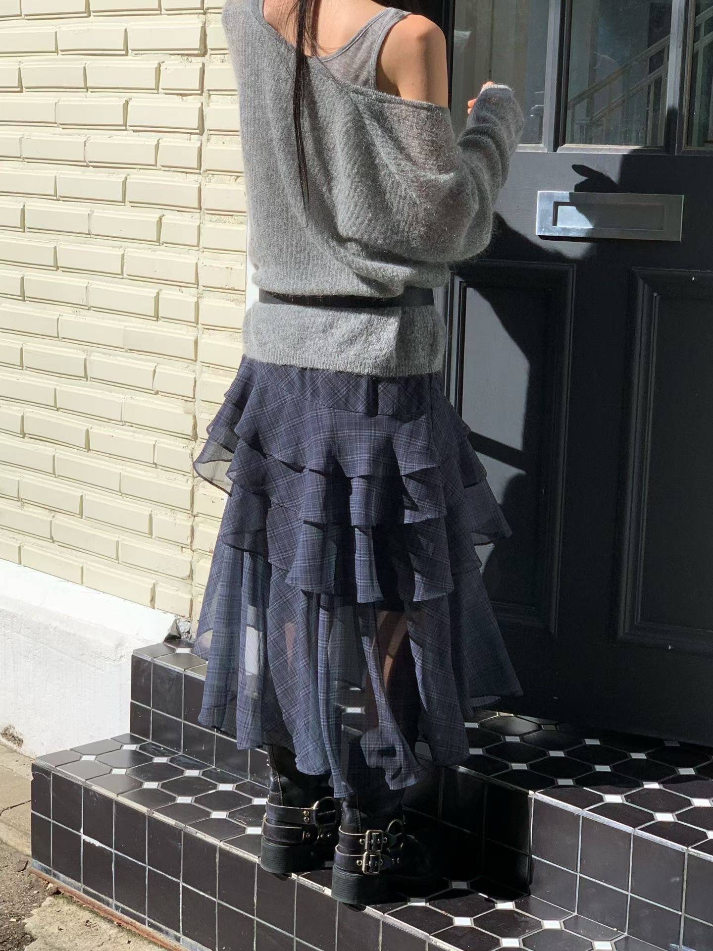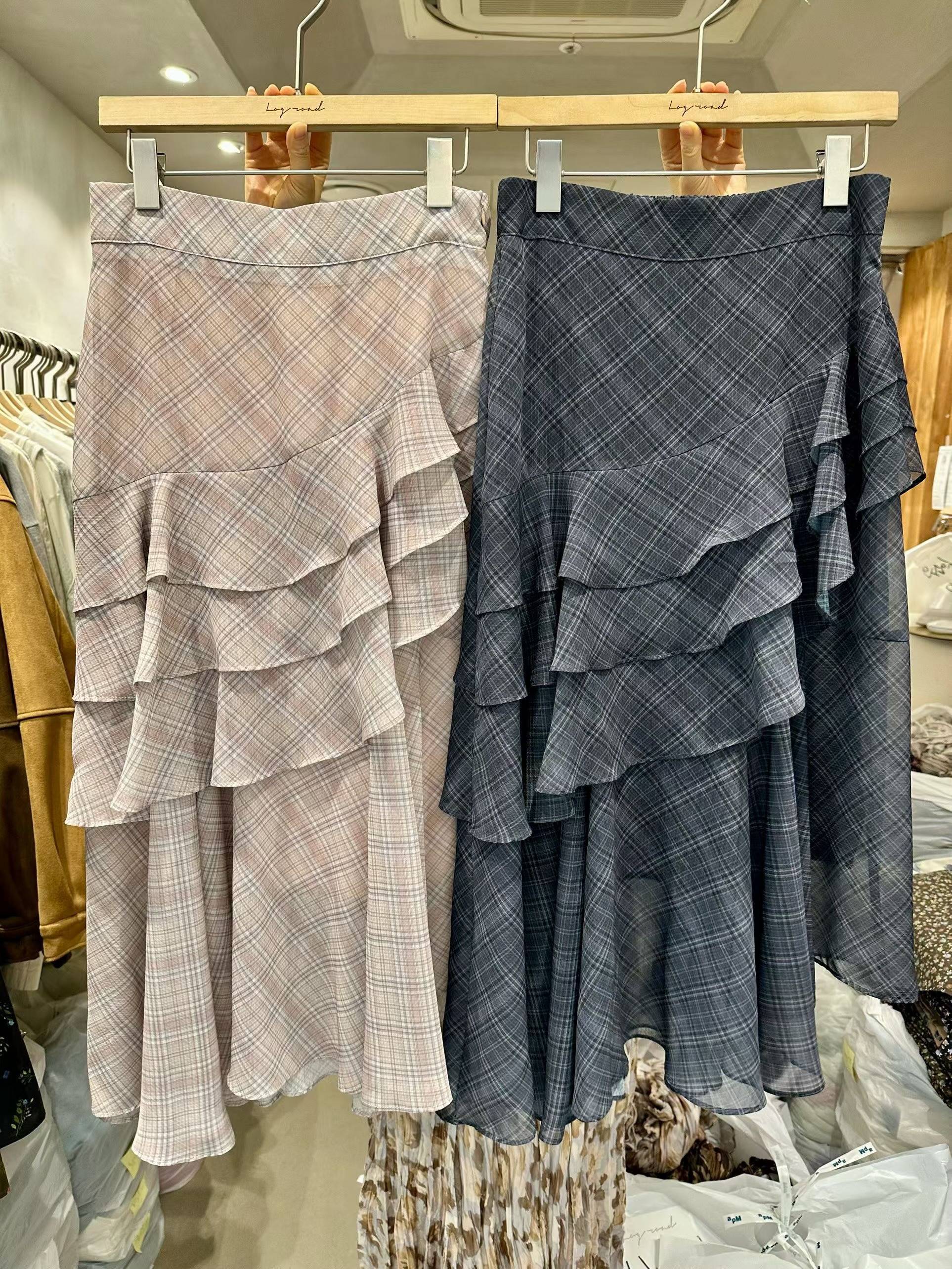不規則格紋荷葉長裙